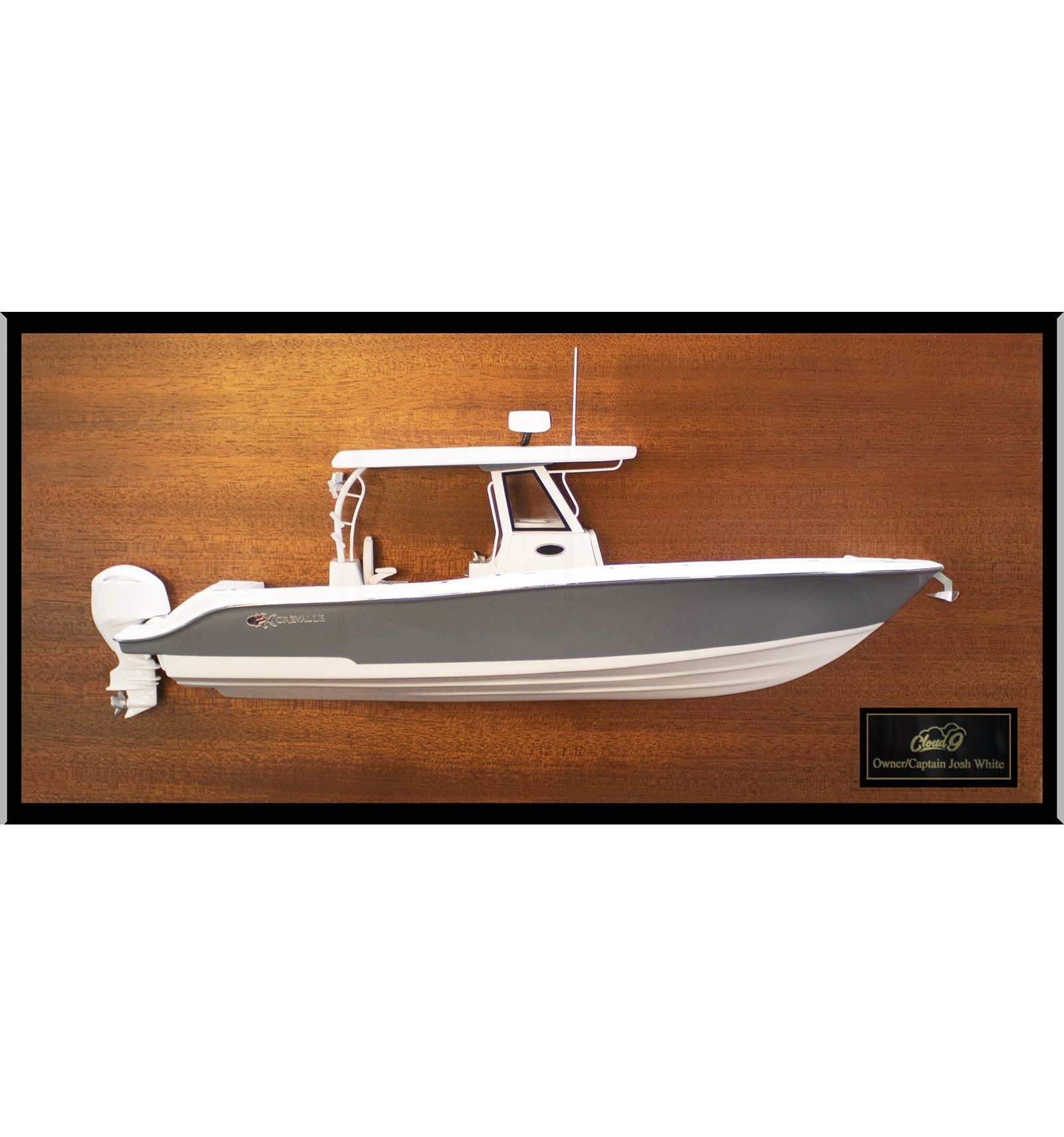 Take a look at this wonderful half model of the Crevalle 33 CC built upon request at scale 1/24 or 16 inches LOA.