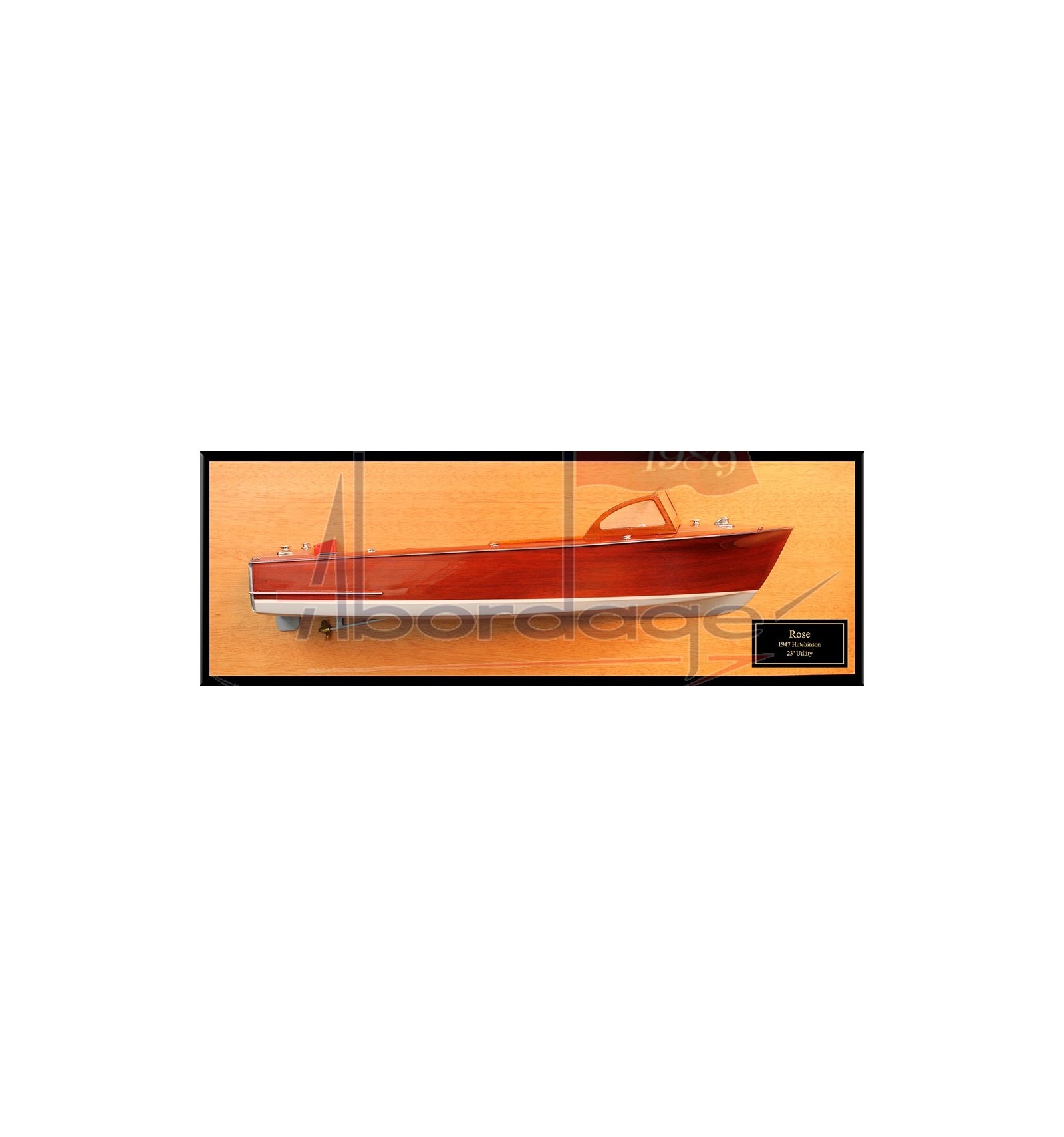 Experience the nostalgic charm of the Hutchinson 23’ Utility - 1947 with our exquisite 17.25-inch wooden half-hull replica!