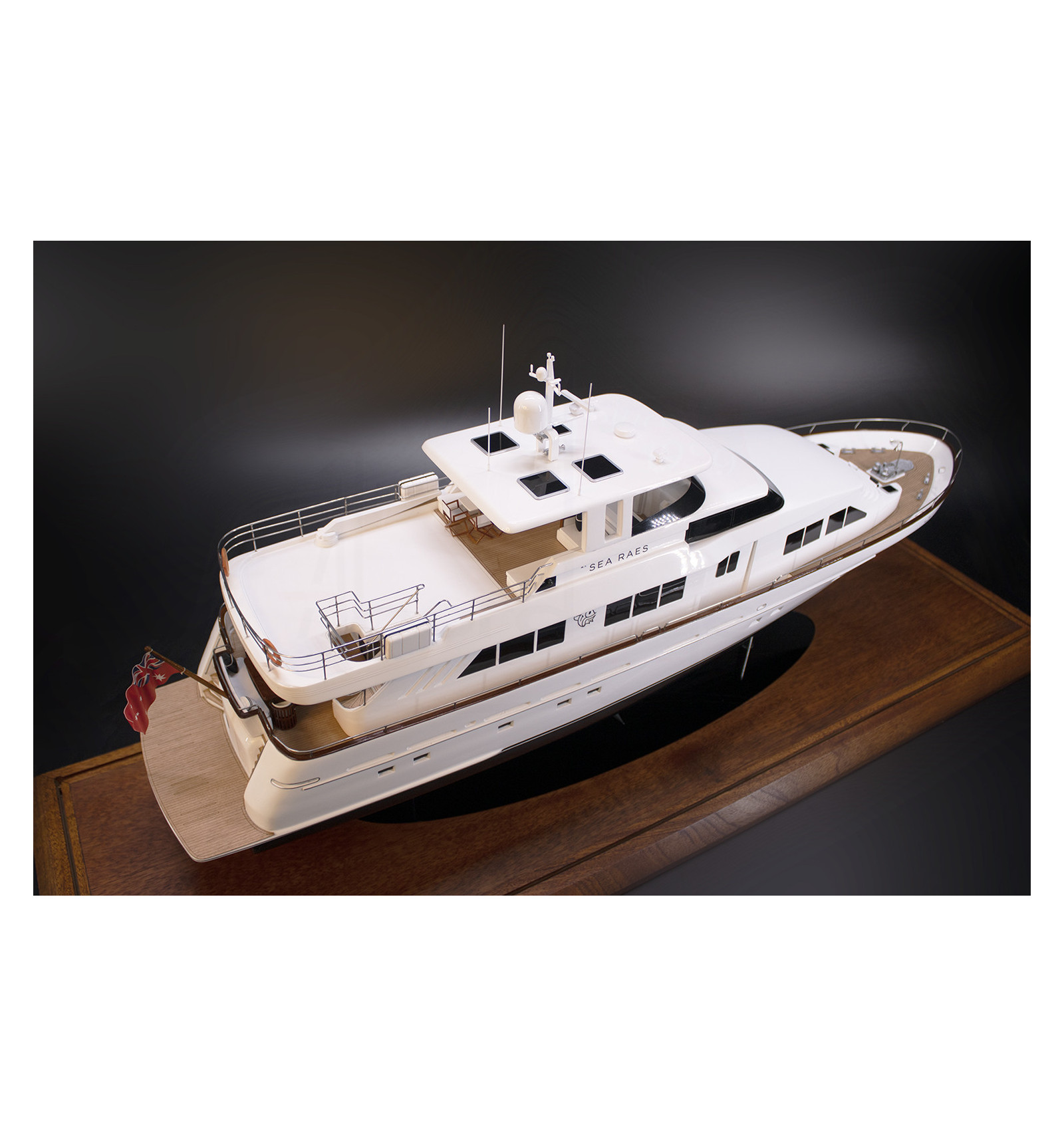 Pay attention to this outstanding custom model of the Sea Raes 101, the luxurious motor yacht, built upon request at scale 1/40 or 30-31 inches LOA.
