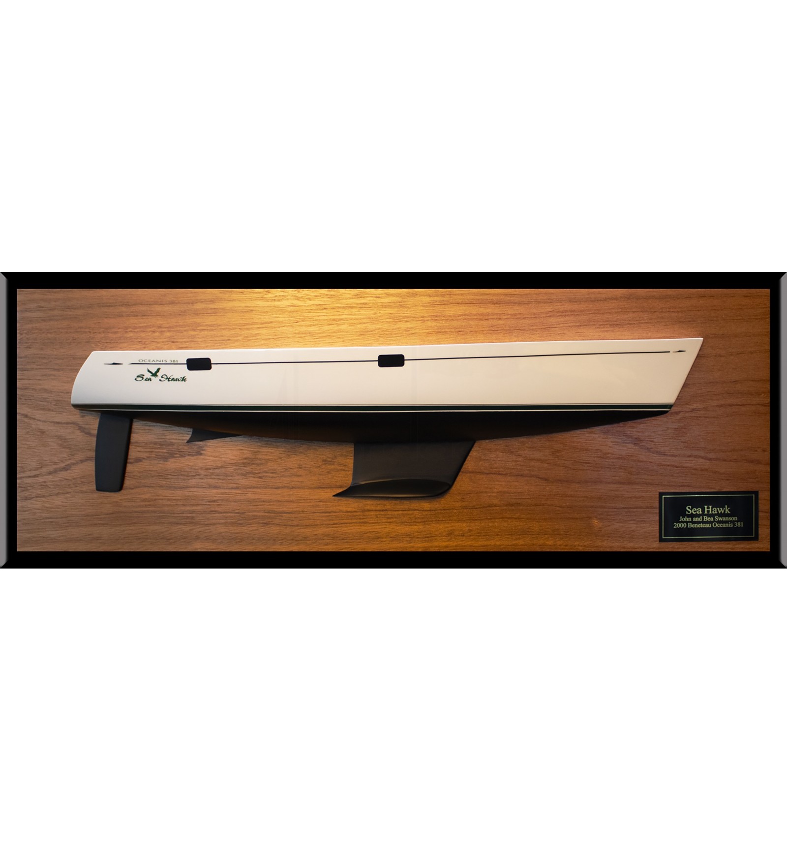 What about this wonderful custom half hull of the Beneteau Oceanis 381 built upon request at scale 1/24 or 19 inches LOA. ?