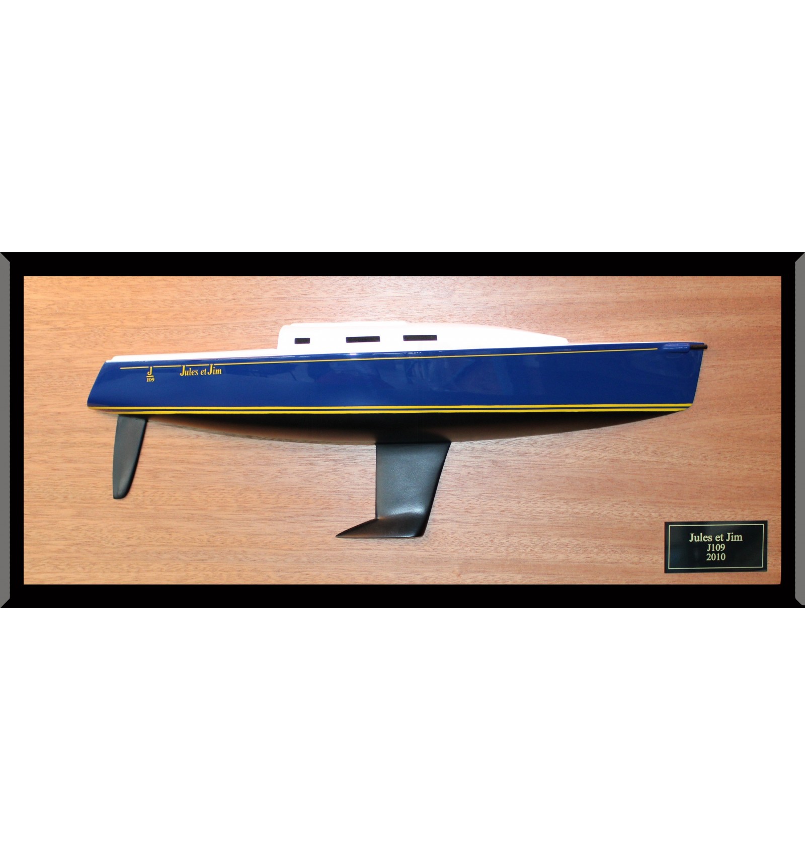 Stare at this terrific custom half hull of the J-109, express built as a birthday gift, at scale 1/24 or 45 cm LOA.