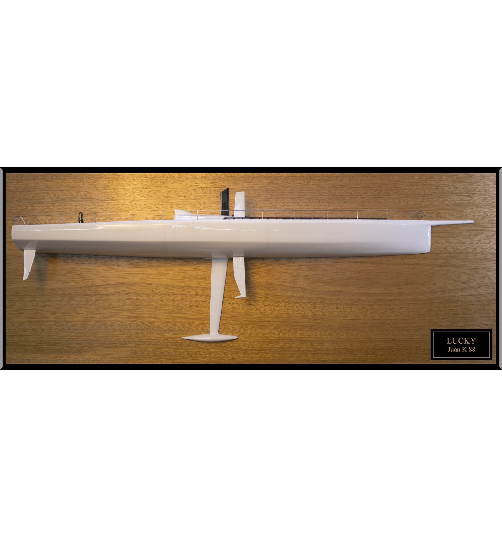 Discover this staggering custom half model with deck details of the Juan K88 built upon request at scale 1/32 or 33 inches.