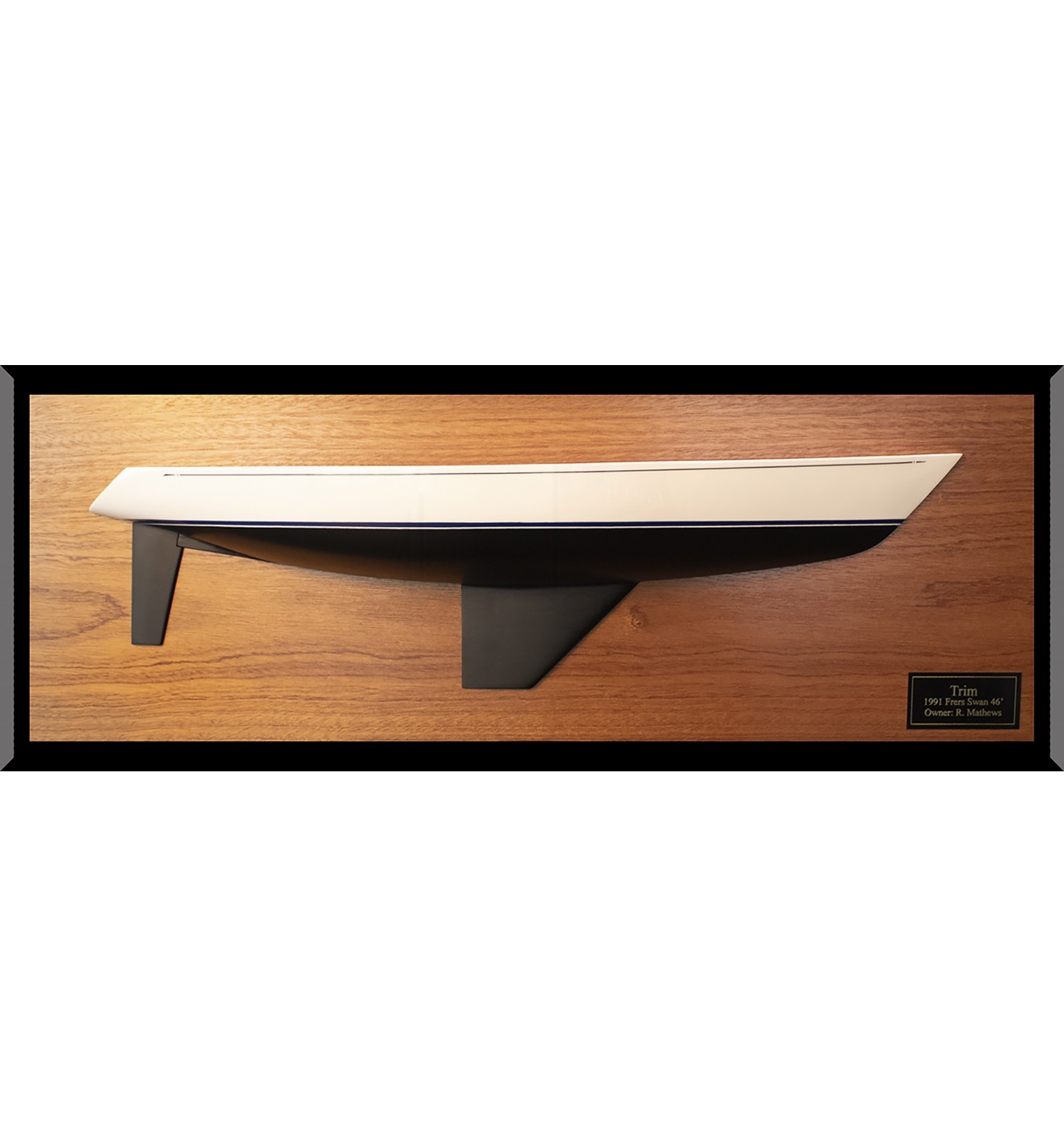 Admire this graceful custom half hull of the Nautor's Swan 46 MKII ( 1991 Frers ) built upon request at scale 1/24 or 23 inches LOA.