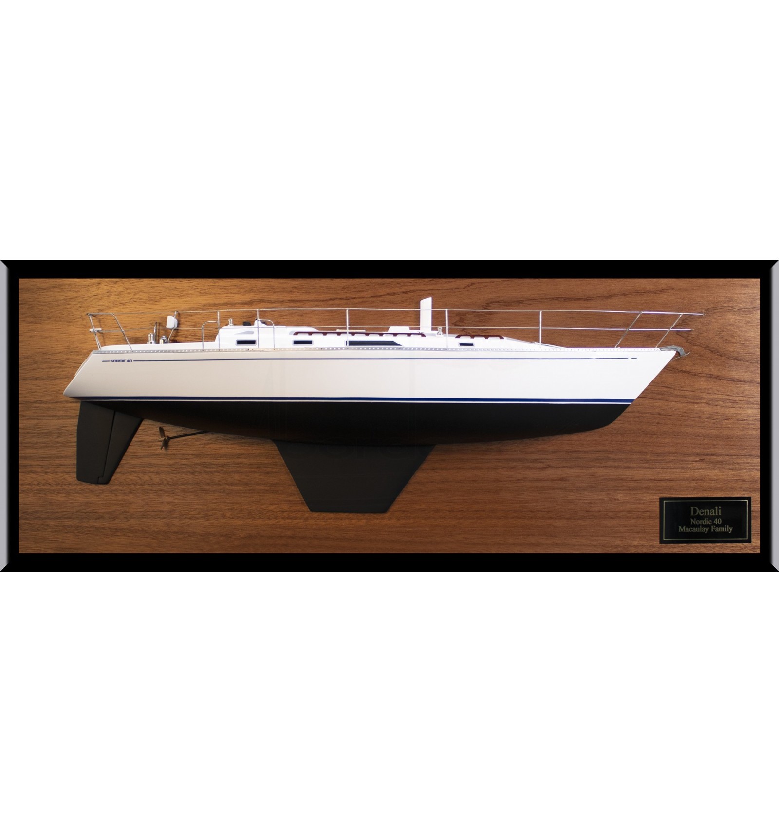 Focus on this alluring custom half model with deck details of the Nordic 40 built upon request at scale 1/24 or 20 inches LOA.