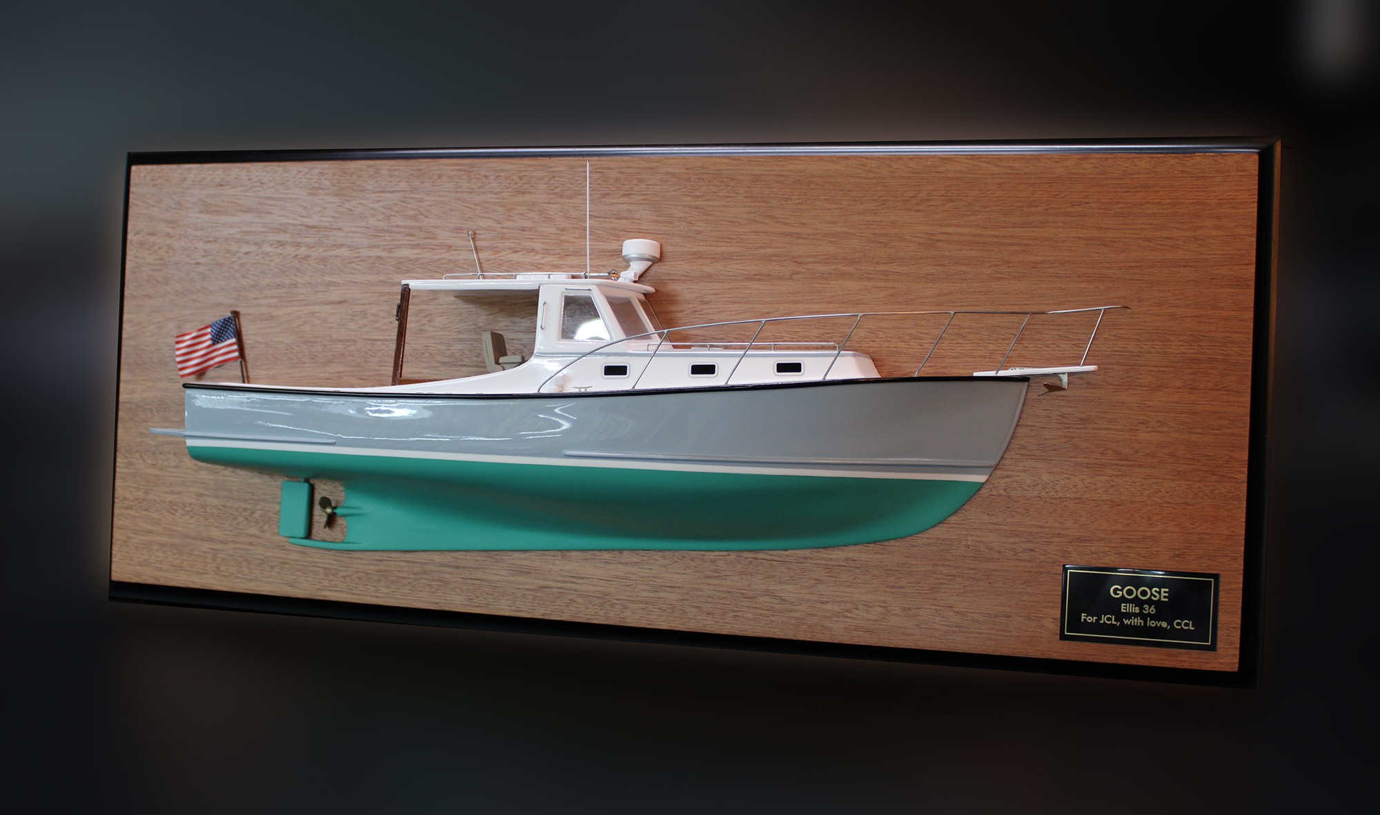 Check this outstanding custom half model of the Ellis 36, built upon request at scale 1/24 or 18 inches LOA.