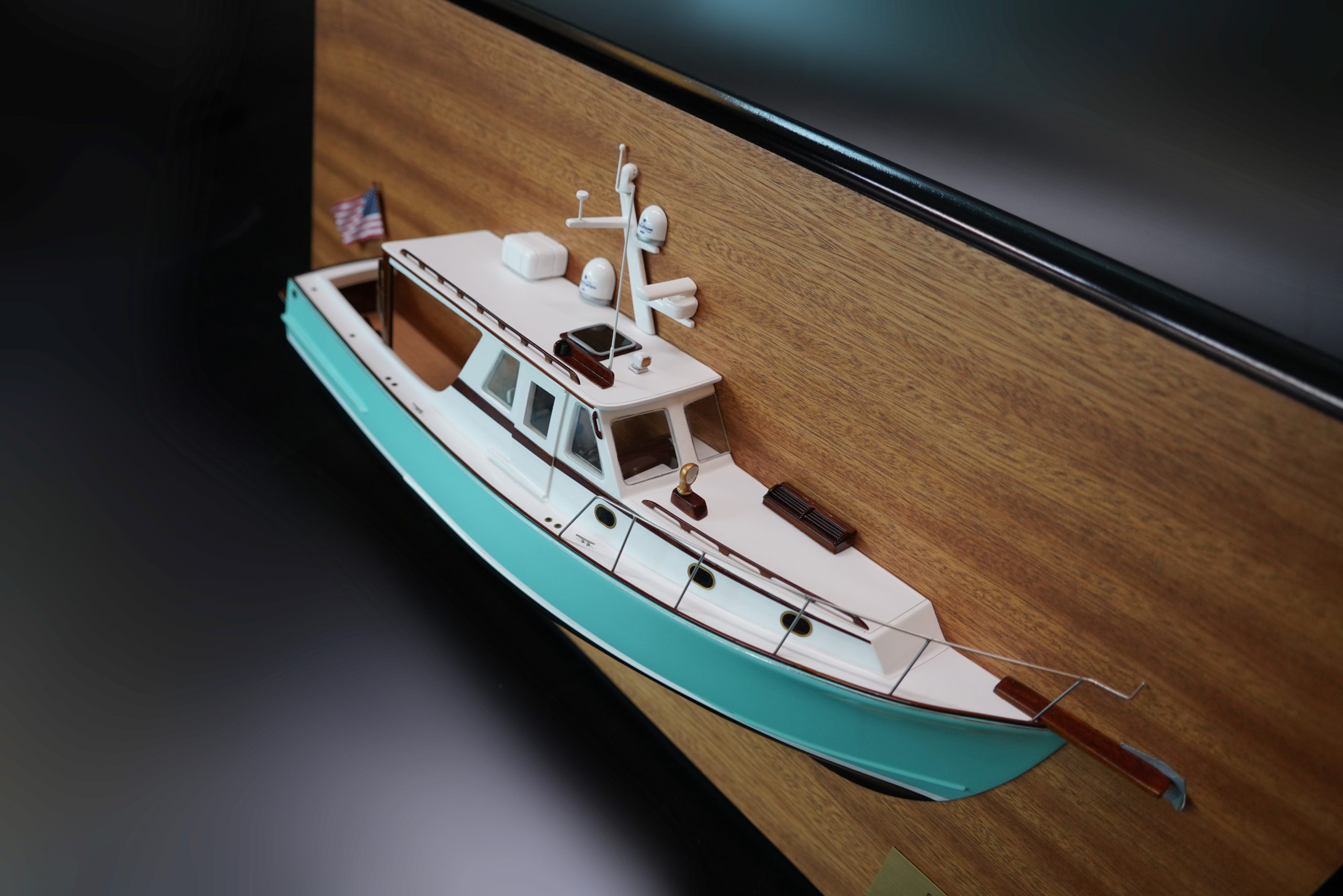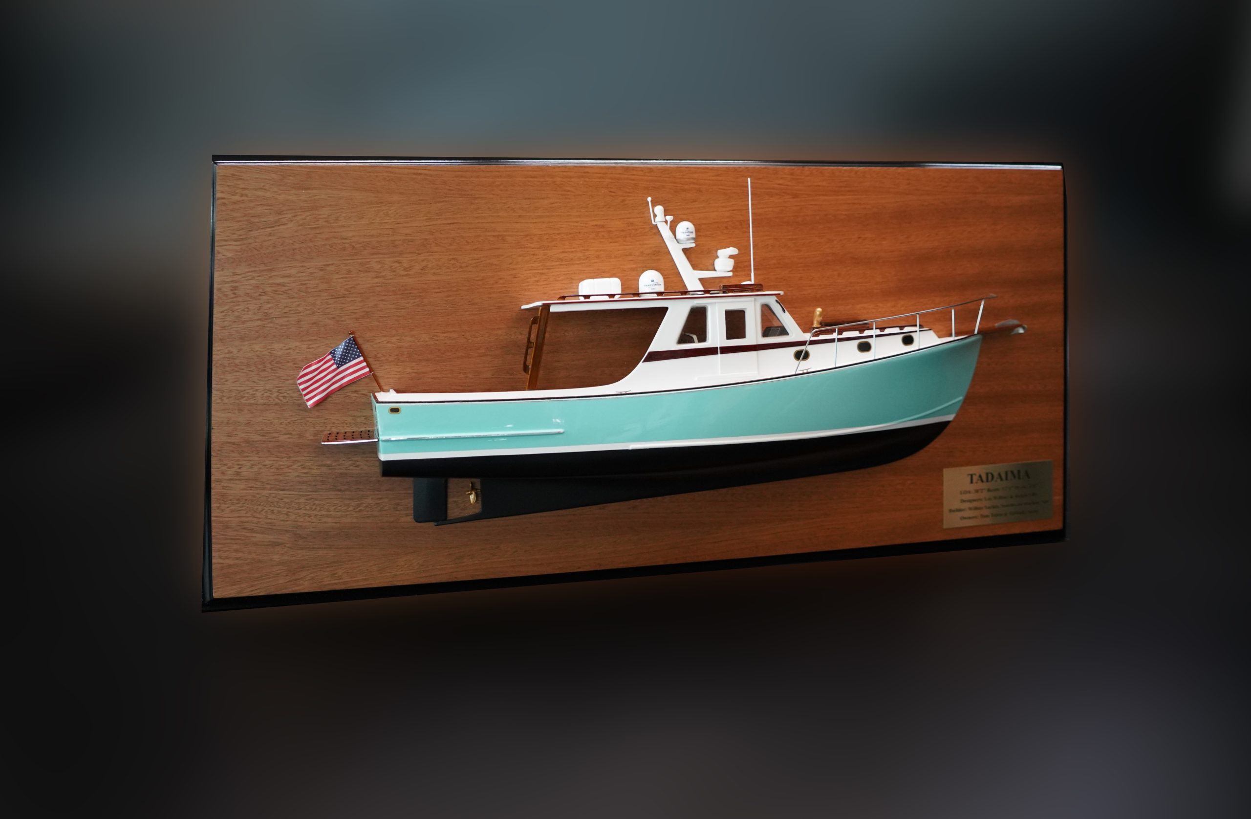 Enjoy this flawless custom half model with deck details of the Wilbur 38 Sedan built upon request at scale 1/24 or 19 inches LOA.
