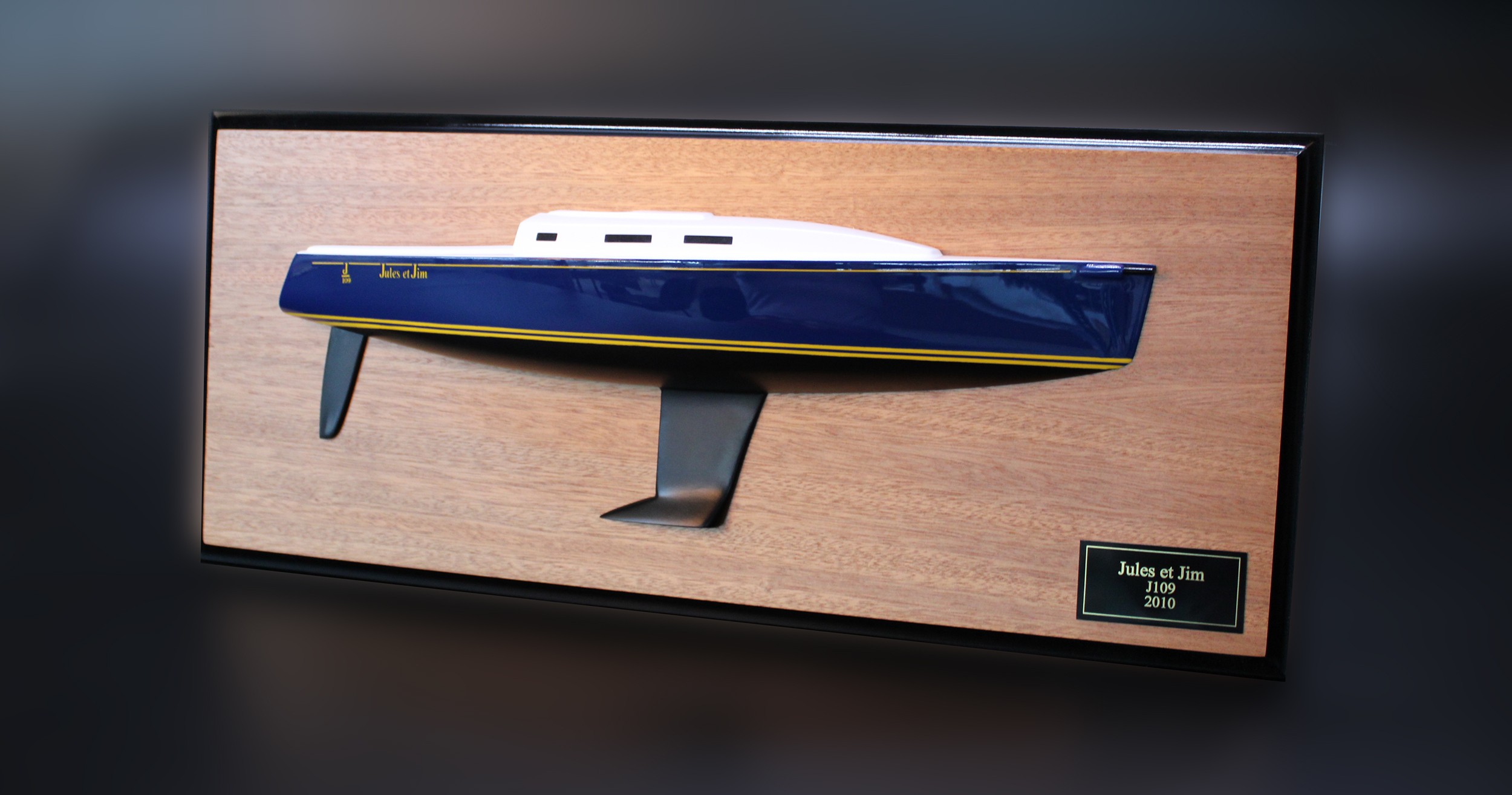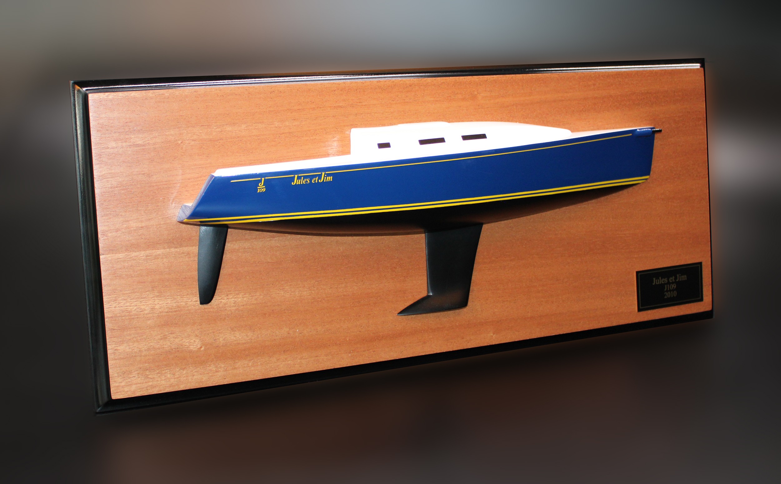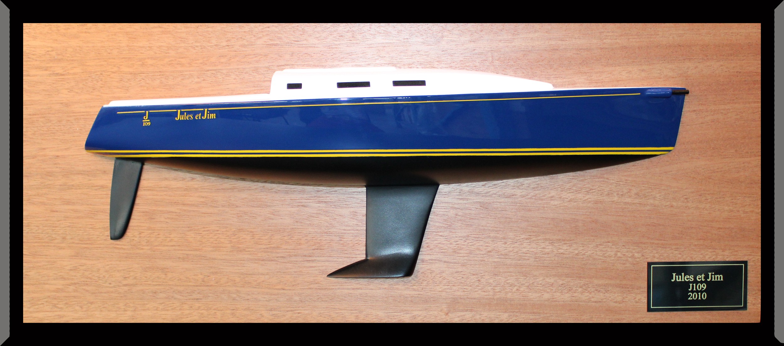 Stare at this terrific custom half hull of the J-109, express built as a birthday gift, at scale 1/24 or 45 cm LOA.